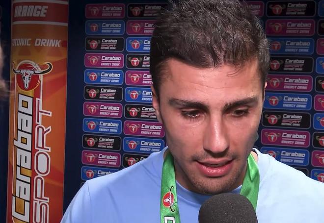 2026年英聯(lián)杯決賽,曼城2-0擊敗阿森納,賽后,曼城中場(chǎng)羅德里在混合采訪區(qū)接受了記者們的采訪。