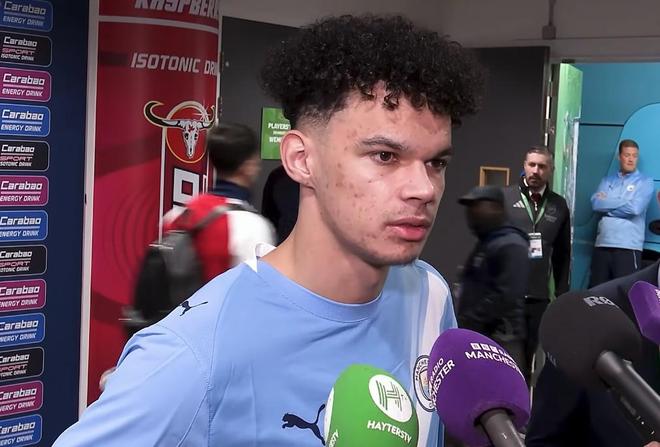 2026年英聯(lián)杯決賽,曼城2-0擊敗阿森納奪冠,賽后,此役上演梅開二度的曼城后衛(wèi)尼科-奧賴?yán)诨旌喜稍L區(qū)接受了記者們的采訪。
