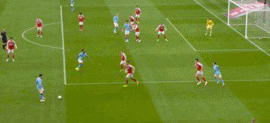45’塞梅尼奧突破賴斯完成下底傳中,哈蘭德在本·懷特干擾下頭球頂高。
