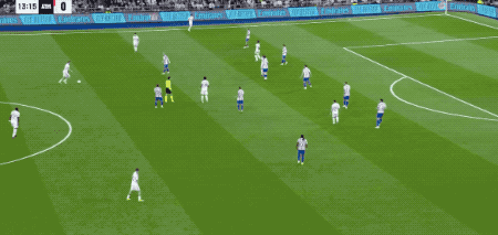 第14分鐘,皇馬的進(jìn)攻轉(zhuǎn)移到了右路,卡瓦哈爾下底傳中,居萊爾不停球凌空抽射,皮球稍稍偏出。