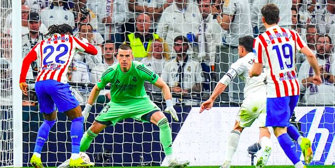 第55分鐘,馬競(jìng)防線又一次犯錯(cuò),漢茨科的回傳來(lái)到危險(xiǎn)地帶,吉梅內(nèi)斯出球被巴爾韋德攔下,巴爾韋德?lián)屔淦崎T(mén),皇馬取得領(lǐng)先。