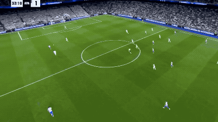 第33分鐘,處于相對(duì)被動(dòng)之中的馬競(jìng)打出經(jīng)典反擊,新援盧克曼策動(dòng)進(jìn)攻將球分到邊路,魯杰里傳中。