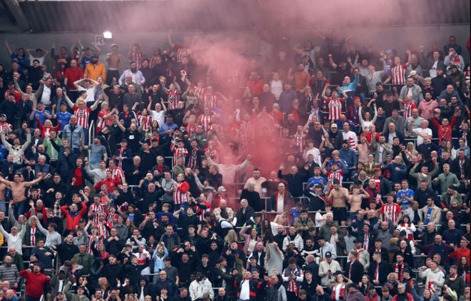 比賽日當(dāng)天,紐卡斯?fàn)柺袃?nèi)的各大球迷專區(qū)人山人海。無(wú)論是圣詹姆斯區(qū)的STACK酒吧,還是數(shù)字媒體中心,都擠滿了前來觀戰(zhàn)的球迷。