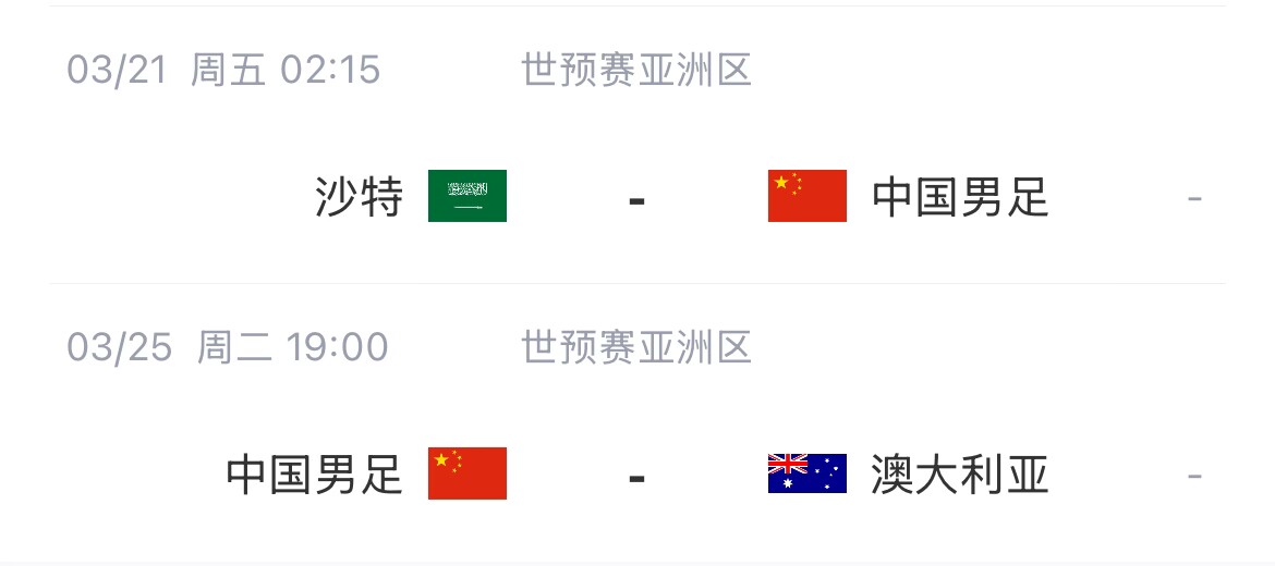 本月的世預賽,國足將在21號客戰(zhàn)沙特,25號主場迎戰(zhàn)澳大利亞。