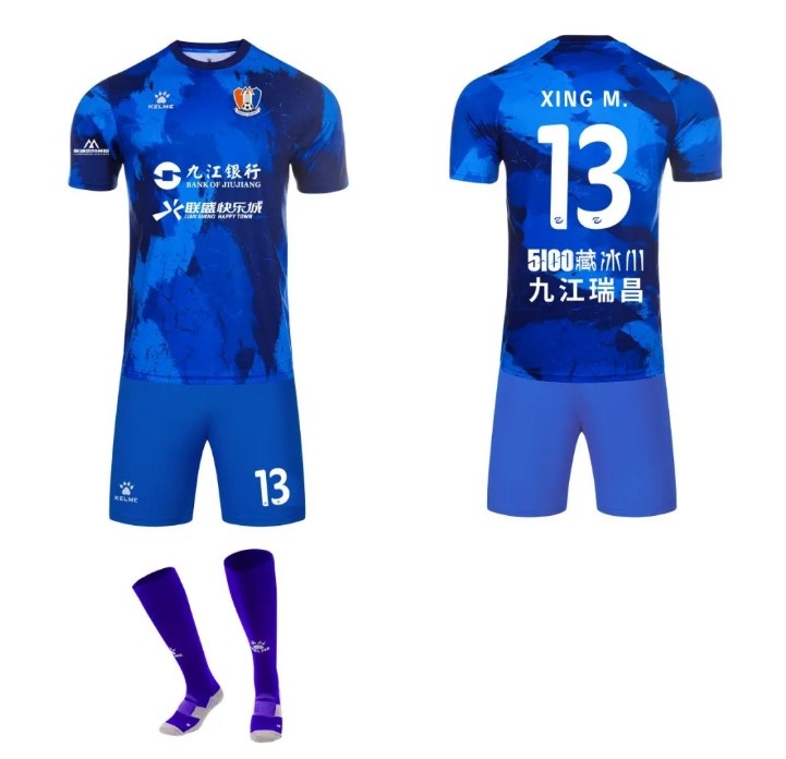 第一客場(chǎng)戰(zhàn)袍采用沉穩(wěn)大氣的深藍(lán)色,彰顯球隊(duì)沉穩(wěn)冷靜、從容不迫的氣質(zhì)。以浩瀚星空為靈感,將深邃的藍(lán)色作為主色調(diào),象征著江西廬山足球俱樂部胸懷遠(yuǎn)大理想,在綠茵場(chǎng)上追逐夢(mèng)想,永不言棄的精神。
