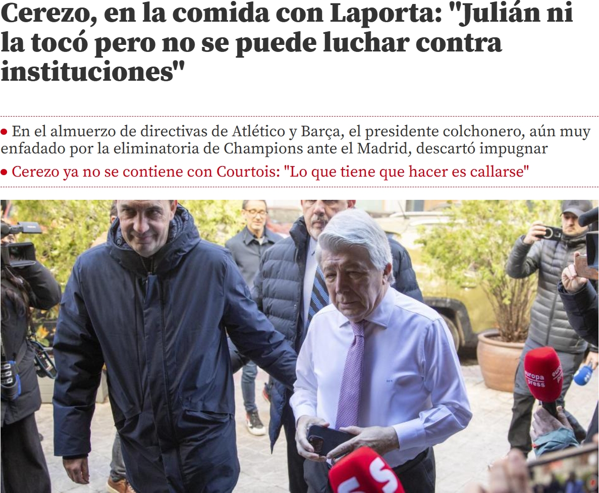 馬競(jìng)主席塞雷佐再次談到了周中歐冠阿爾瓦雷斯被判無(wú)效的點(diǎn)球,塞雷佐斬釘截鐵地表示這球應(yīng)算有效。