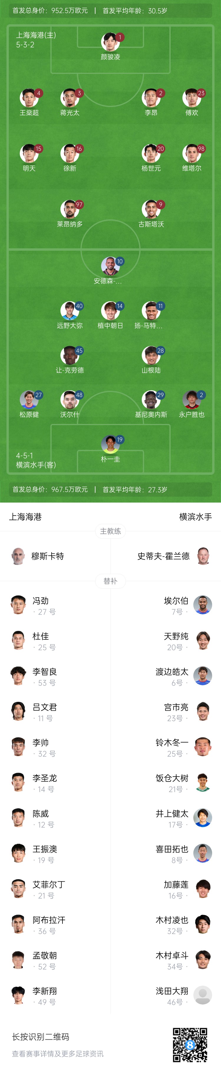 03月04日訊 北京時間今晚20點,亞冠精英聯(lián)賽東亞區(qū)1/8決賽首回合,上海海港主場迎戰(zhàn)橫濱水手,賽前雙方公布首發(fā)陣容。