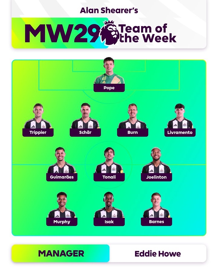 在昨天結(jié)束的聯(lián)賽杯決賽中,紐卡2-1擊敗利物浦,時隔70年再次奪冠。英超官方也調(diào)侃道,對于紐卡名宿希勒來說,本輪的最佳陣容只有一個,那就是紐卡在聯(lián)賽杯決賽中的首發(fā)陣容。