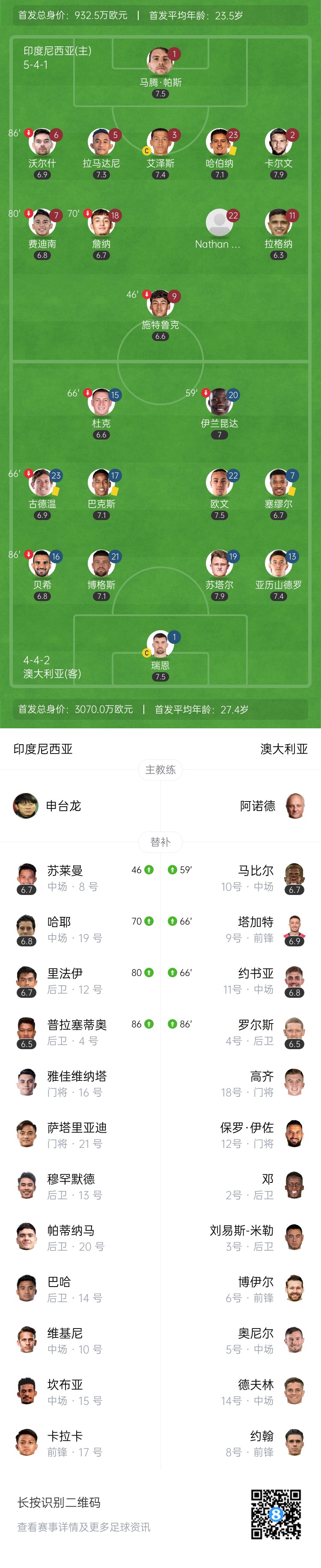 倒反天罡!印尼首發(fā)身價高達(dá)2500萬歐,澳大利亞1450萬歐