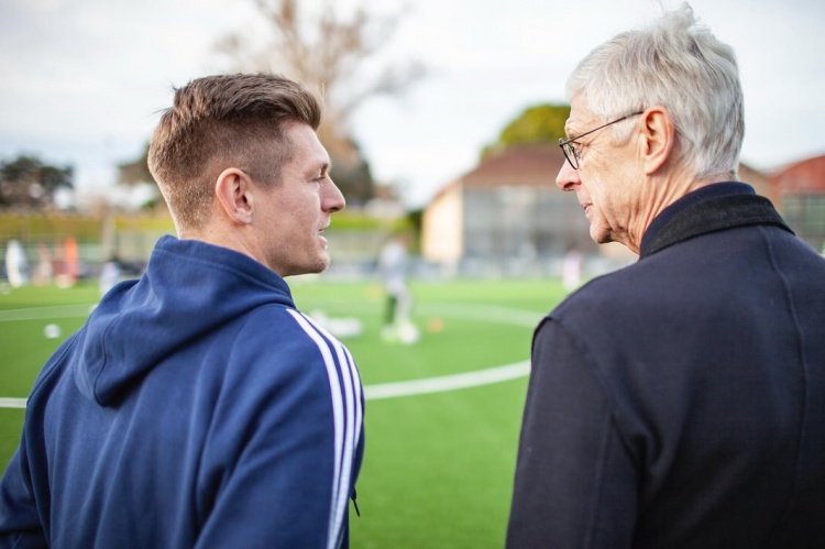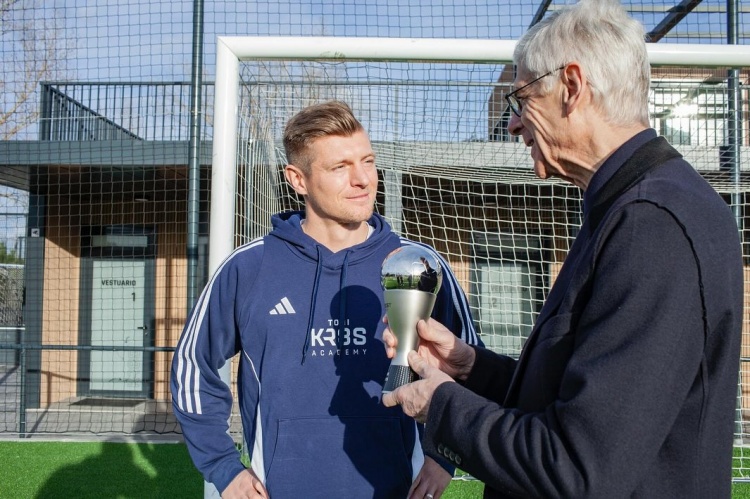 溫格造訪克羅斯青訓(xùn)營并頒發(fā)FIFA最佳陣容獎杯,克羅斯發(fā)文致謝