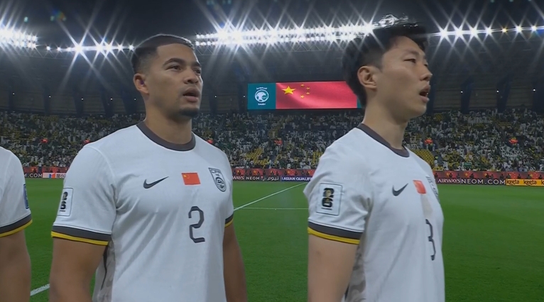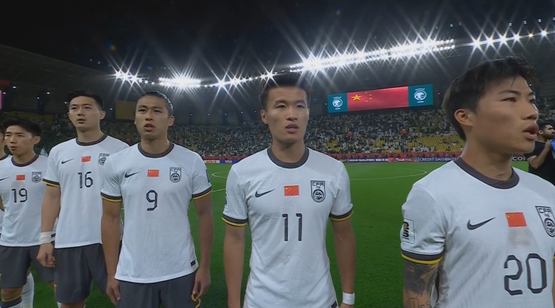 大戰(zhàn)一觸即發(fā)!賽前國(guó)歌儀式,國(guó)足首發(fā)11人高唱國(guó)歌