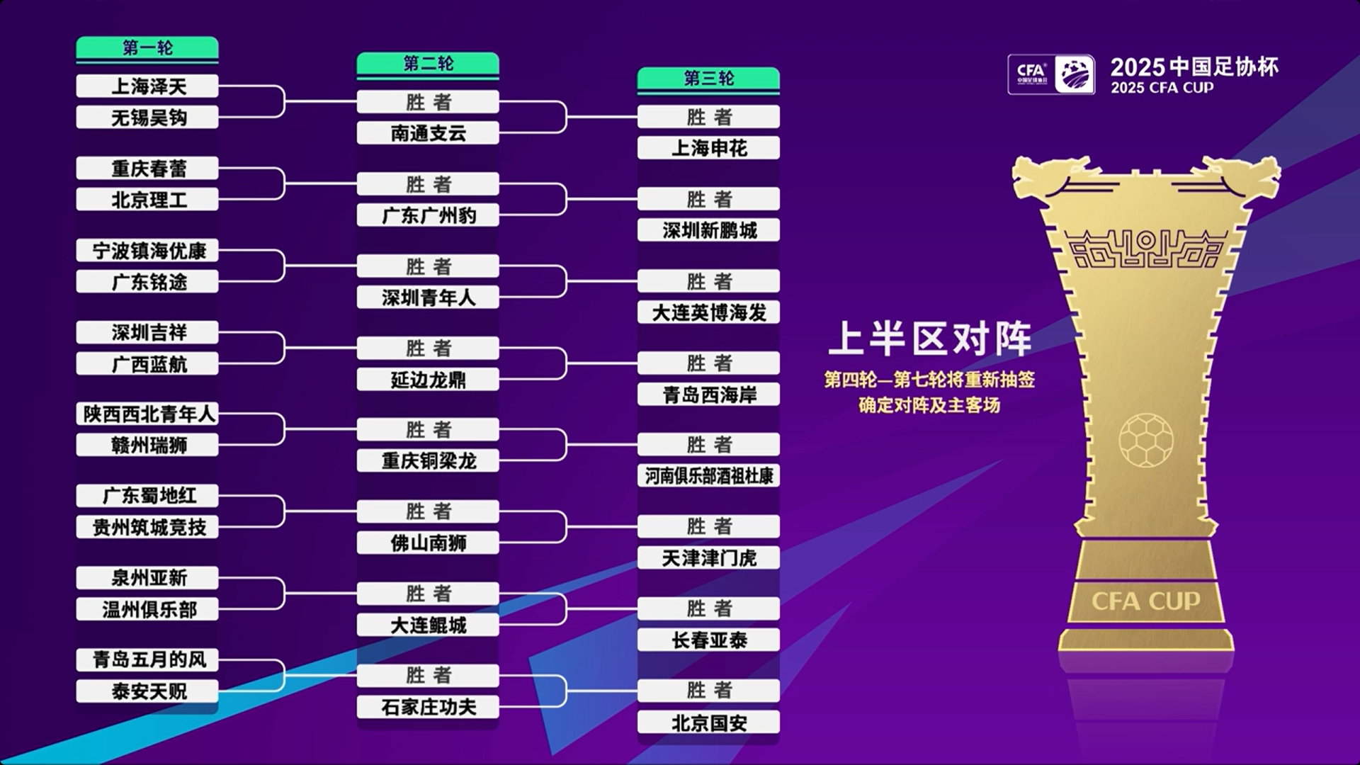 02月27日訊 2025年中國足協(xié)杯抽簽儀式今日舉行,此次抽簽確定第1輪至第3輪的對(duì)陣,中超16隊(duì)第3輪亮相并客場作戰(zhàn),第4輪至第7輪將重新抽簽確定對(duì)陣及主客場。