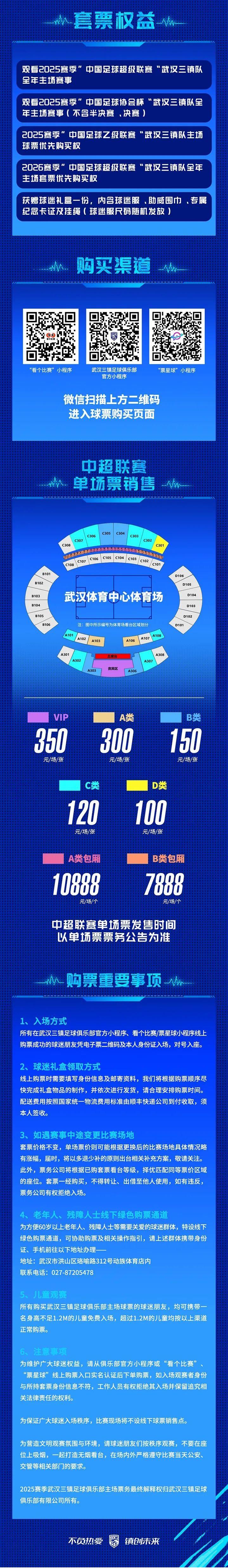 迎接主場(chǎng),登上看臺(tái),我們一起為武漢、為三鎮(zhèn)而戰(zhàn)!主場(chǎng)票務(wù)詳情請(qǐng)查看下圖: