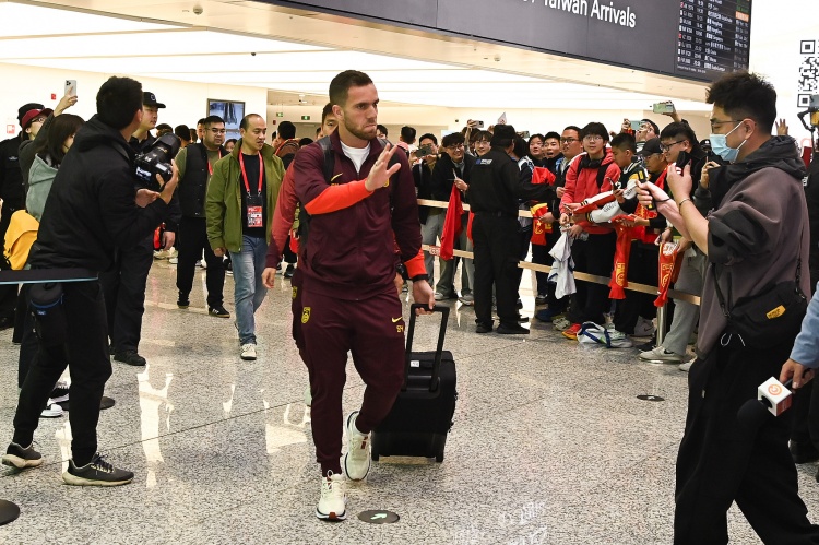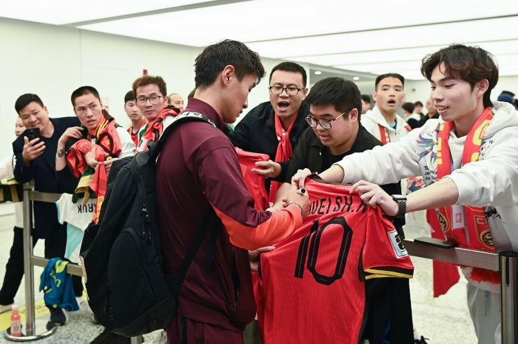 國足于北京時(shí)間21日18點(diǎn)40分抵達(dá)杭州,機(jī)場(chǎng)有眾多球迷前來接機(jī),國足眾將們也滿足了一些球迷簽名和合影的請(qǐng)求。