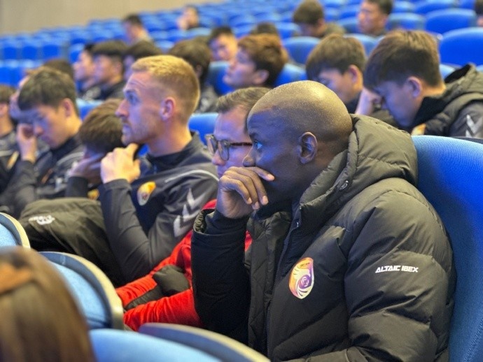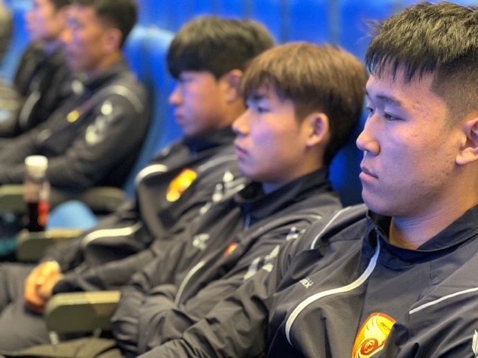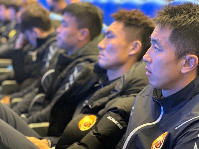 最后,現(xiàn)役中甲聯(lián)賽裁判監(jiān)督尹航進行了職業(yè)聯(lián)賽判罰統(tǒng)一尺度宣講。他的宣講以文字結合過往實戰(zhàn)視頻案例的形式展現(xiàn),給隊員們留下了深刻印象。