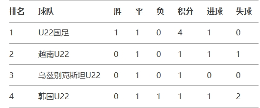 U22邀請賽積分榜:U22國足1勝1平0失球暫居第一,末輪對(duì)陣越南