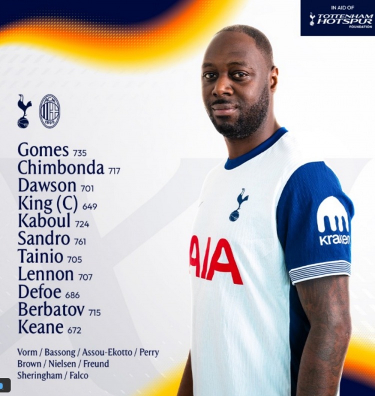 熱刺vs米蘭傳奇賽首發(fā):皮爾洛領(lǐng)銜,貝巴、卡福、安布羅西尼先發(fā)