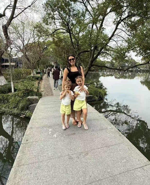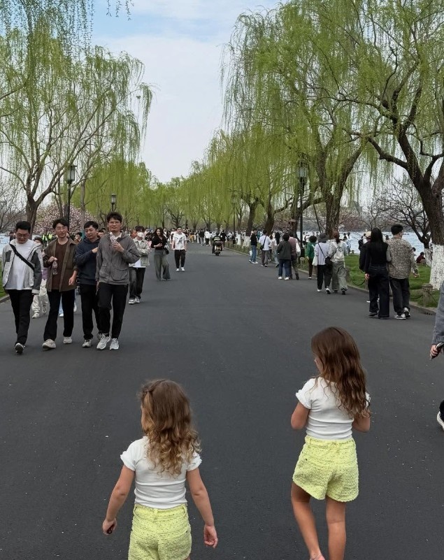 塞爾吉尼奧妻子更新社媒,曬出帶女兒逛杭州的照片+附文:逛逛杭州街頭。