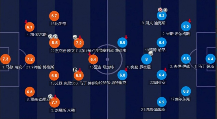 - 恩佐本場(chǎng)數(shù)據(jù):傳射建功+2關(guān)鍵傳球,評(píng)分9.0全場(chǎng)最高