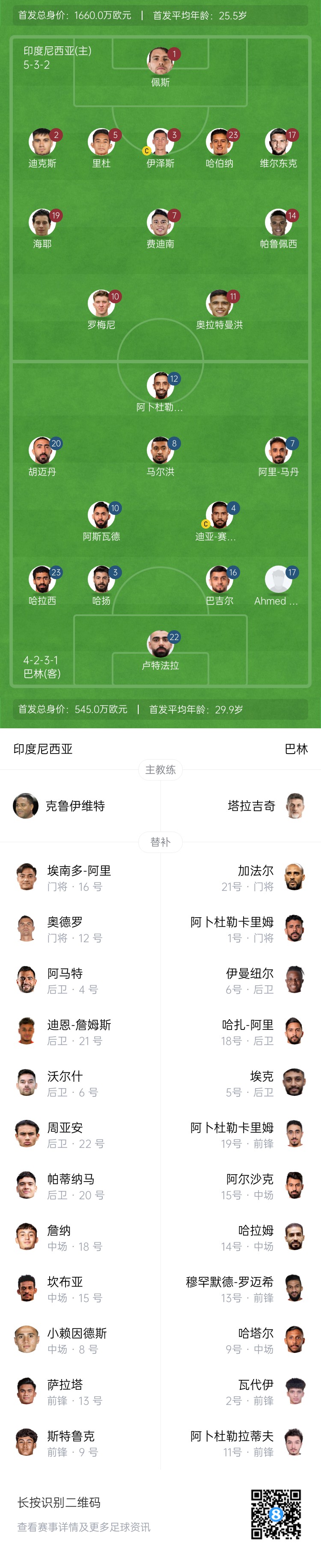 國足競爭對手!印尼vs巴林首發(fā):印尼9歸化,羅梅尼、迪克斯先發(fā)