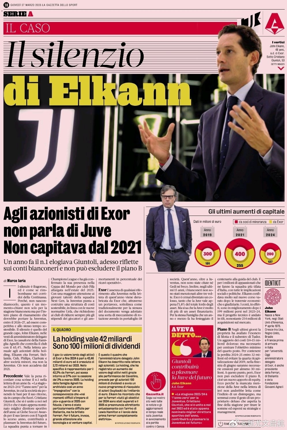 自 2021 年以來,Exor 的信中首次沒有提到尤文圖斯,也沒有提及其未來計劃。