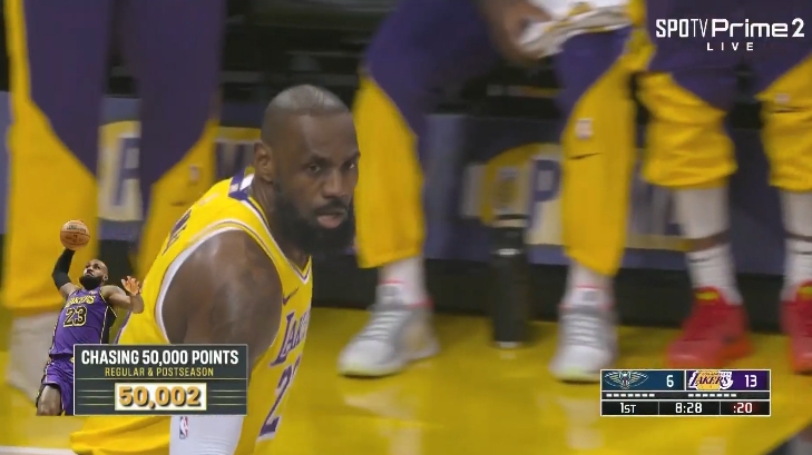 今日NBA常規(guī)賽,鵜鶘對(duì)陣湖人。40歲的湖人球星詹姆斯達(dá)成生涯50000分(常規(guī)賽+季后賽)。