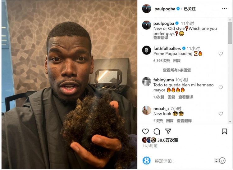 - 博格巴社媒曬理發(fā)照片:新發(fā)型還是舊發(fā)型,大家喜歡哪一個(gè)?