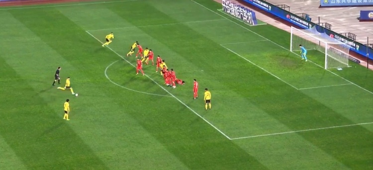 第14分鐘,戴維森主罰任意球射門高出橫梁。↓