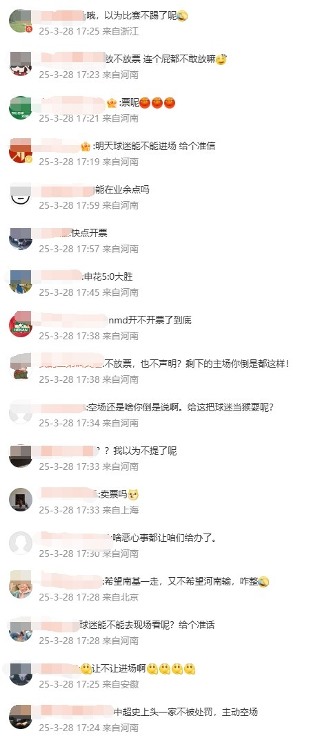 3月28日訊 本周六晚間,河南隊(duì)將在主場(chǎng)迎戰(zhàn)上海申花,不過這場(chǎng)比賽的門票遲遲沒有銷售,球隊(duì)也沒有對(duì)此做出解釋。賽前一天,河南隊(duì)球迷越發(fā)不滿。在球隊(duì)官博評(píng)論區(qū),球迷們發(fā)出了很多的質(zhì)問。