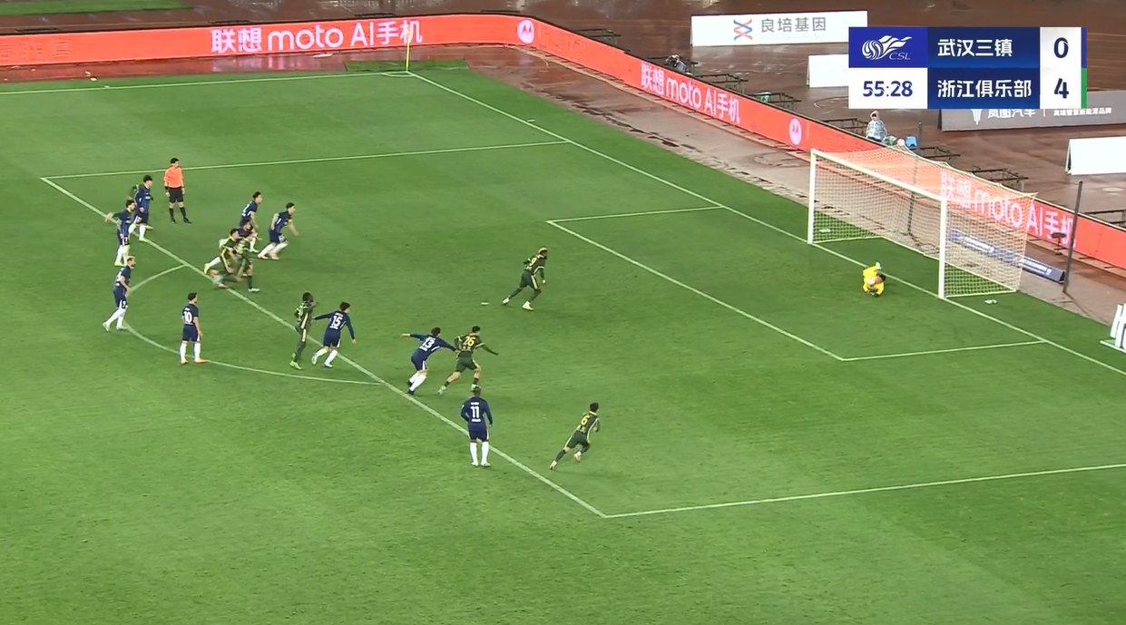 - 任航送點(diǎn),布彭扎點(diǎn)球被撲,錯(cuò)失帽子戲法,浙江4-0領(lǐng)先三鎮(zhèn)