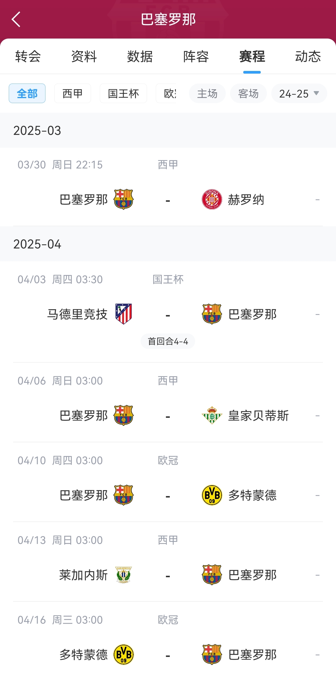 巴薩賽程