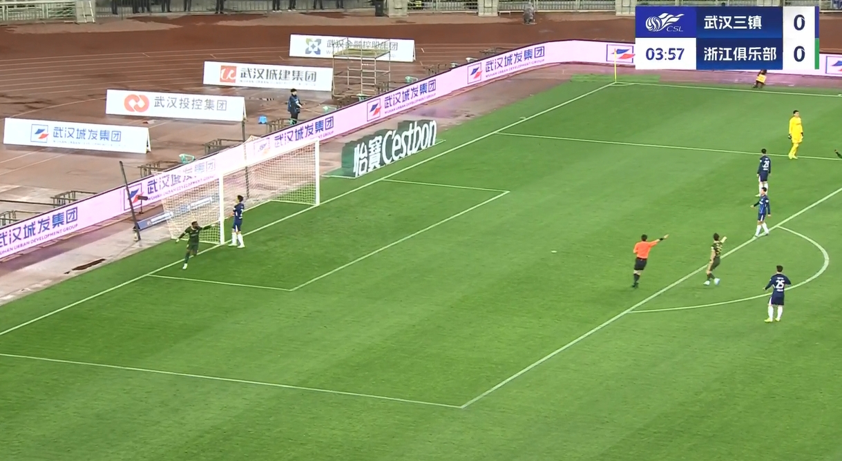 上半場補(bǔ)時9分鐘。半場戰(zhàn)罷,武漢三鎮(zhèn)0-4浙江隊。