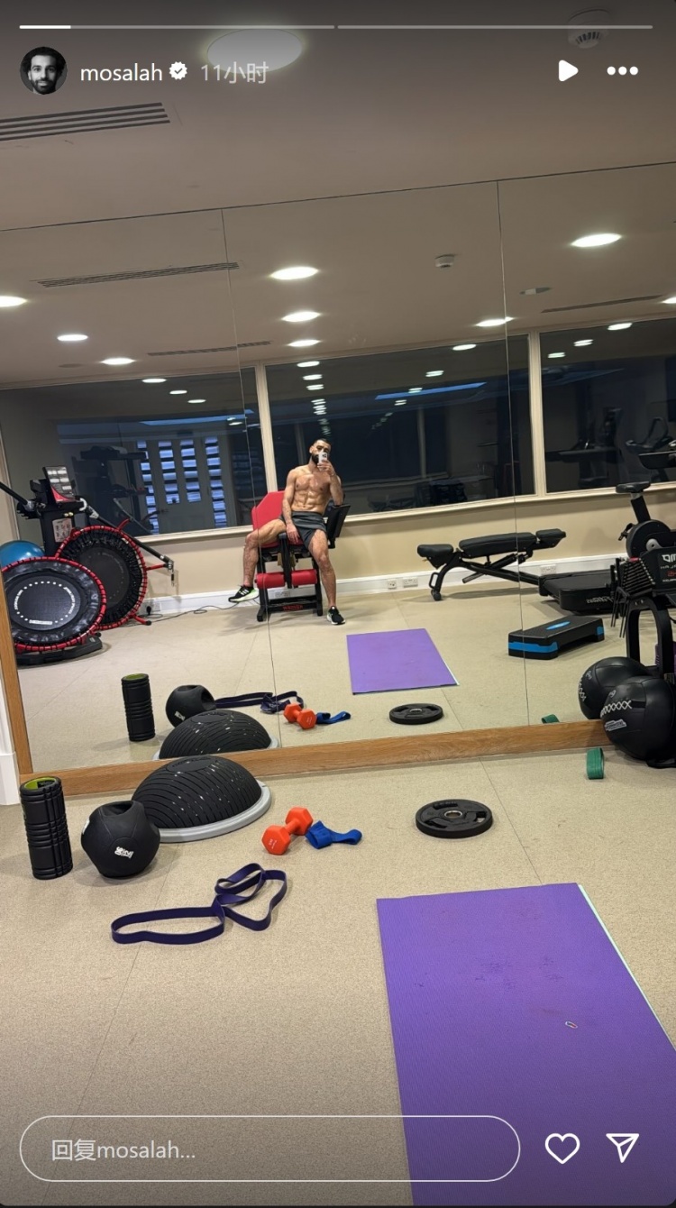 3月29日訊 利物浦前鋒薩拉赫更新社媒動態(tài),曬出在健身房內(nèi)的照片。