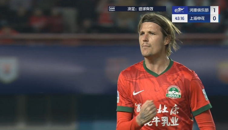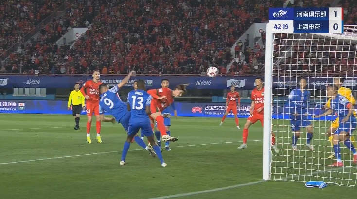 比賽第41分鐘,申花后防混亂,鮑亞雄出擊失誤,吳曦門線解圍,隨后阿奇姆彭助攻邁達(dá)納頭球破門,吳曦在球門內(nèi)還試圖用手把球擋出,但未能阻止皮球入網(wǎng)。河南1-0領(lǐng)先申花!