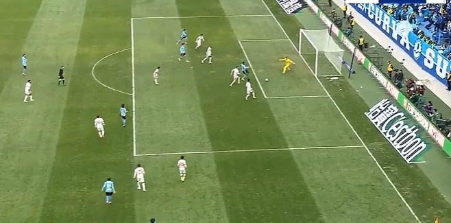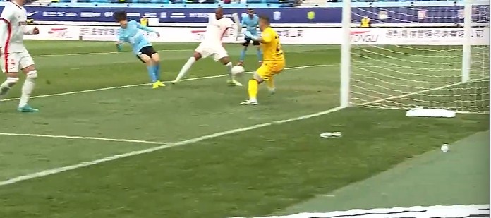 第14分鐘,亞泰左路玄智健下底傳到禁區(qū)徐越門前頭球頂偏了。↓