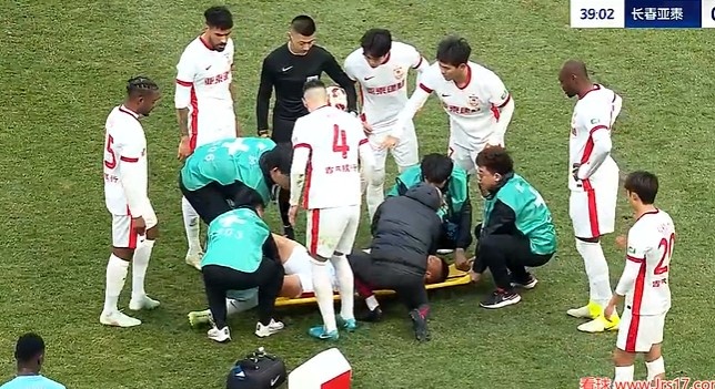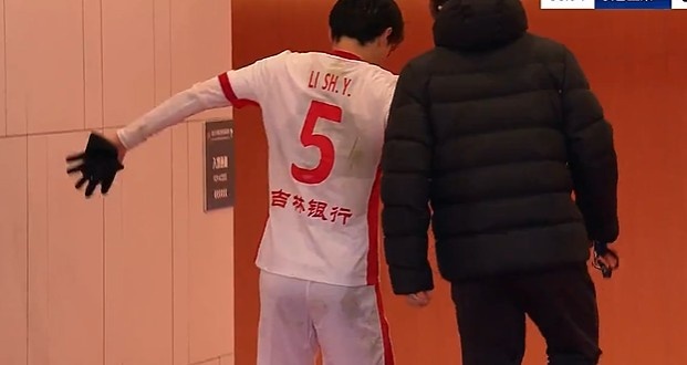 第38分鐘,譚龍拼搶中受傷倒地被擔(dān)架抬出場(chǎng)外,同時(shí)李申圓受傷堅(jiān)持不住回更衣室?!?/p>