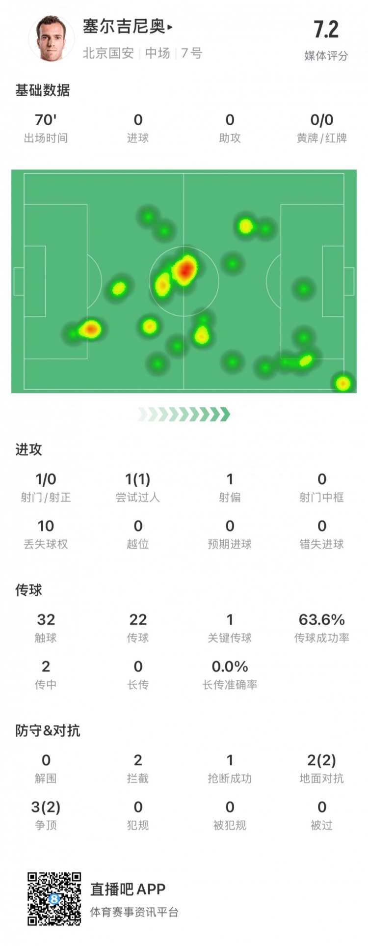 3月29日訊 今晚進(jìn)行的中超第三輪比賽,北京國安主場迎戰(zhàn)成都蓉城,首發(fā)登場的塞爾吉尼奧迎來國安生涯首秀。第70分鐘塞爾吉尼奧被隊友換下,此役他個人數(shù)據(jù)如下: