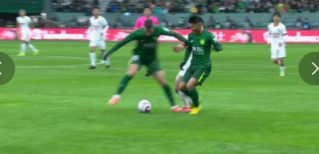 上半場(chǎng)補(bǔ)時(shí)6分鐘,國安1-0成都蓉城。
