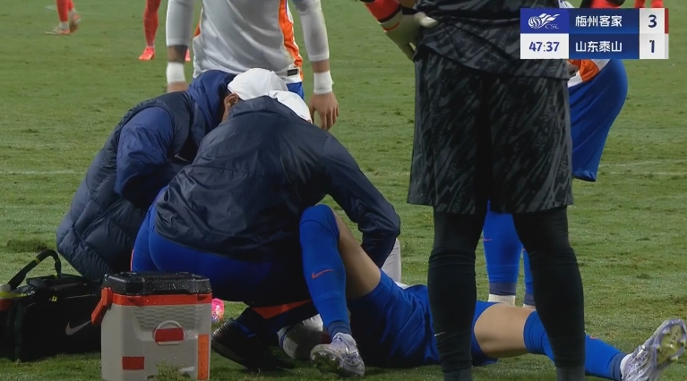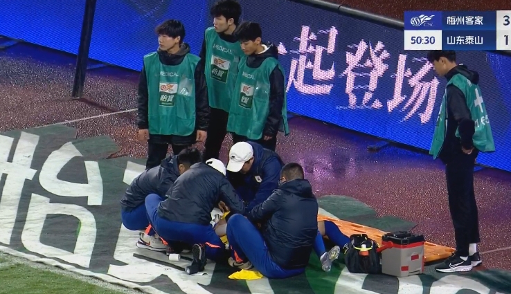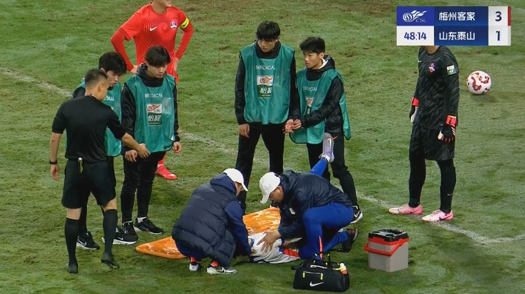 03月29日訊 泰山vs梅州第50分鐘,王彤遠(yuǎn)射后為了躲避封堵失去平衡摔地,隨后被擔(dān)架抬下。張弛替補登場!