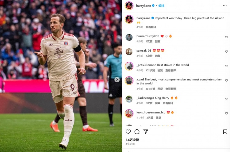 3月30日訊 拜仁在本輪德甲3-2險(xiǎn)勝圣保利,凱恩傳射建功也在賽后通過社媒曬照慶祝。