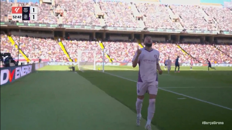 03月30日訊 西甲第29輪,巴塞羅那vs赫羅納。比賽第53分鐘,赫羅納抓住巴薩后場(chǎng)失誤,丹朱馬單刀破門(mén),比分變?yōu)?-1。