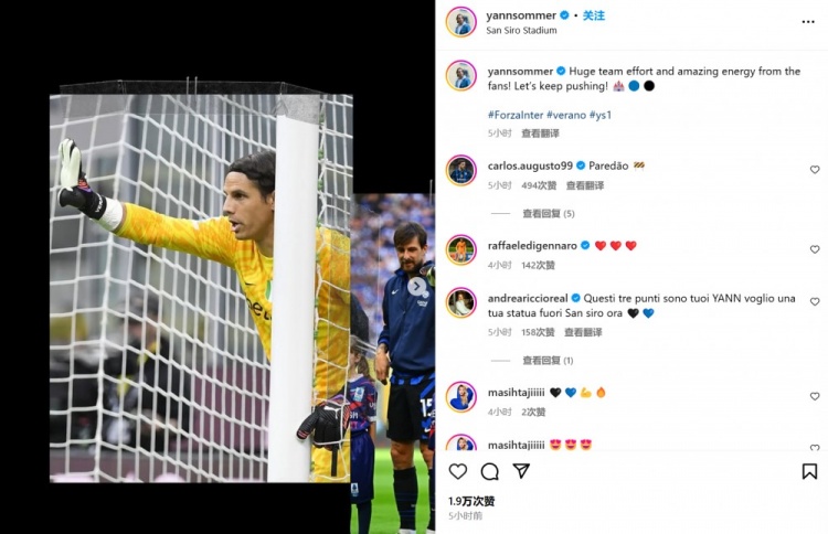 神撲救主!索默社媒曬照慶祝:全隊(duì)做出巨大努力,讓我們繼續(xù)前進(jìn)