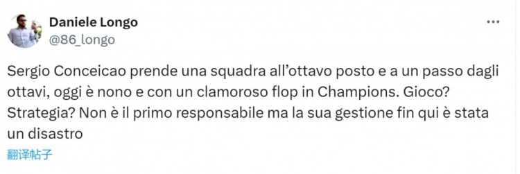 隆戈寫道:“孔塞桑接手了一支排名聯(lián)賽第8名,并且?guī)缀鯐x級歐冠16強的球隊,如今球隊排名聯(lián)賽第9名,歐冠慘淡出局。比賽風格?戰(zhàn)術策略?他不是首要責任人,但到目前為止,他的執(zhí)教是一場災難?!?/p>