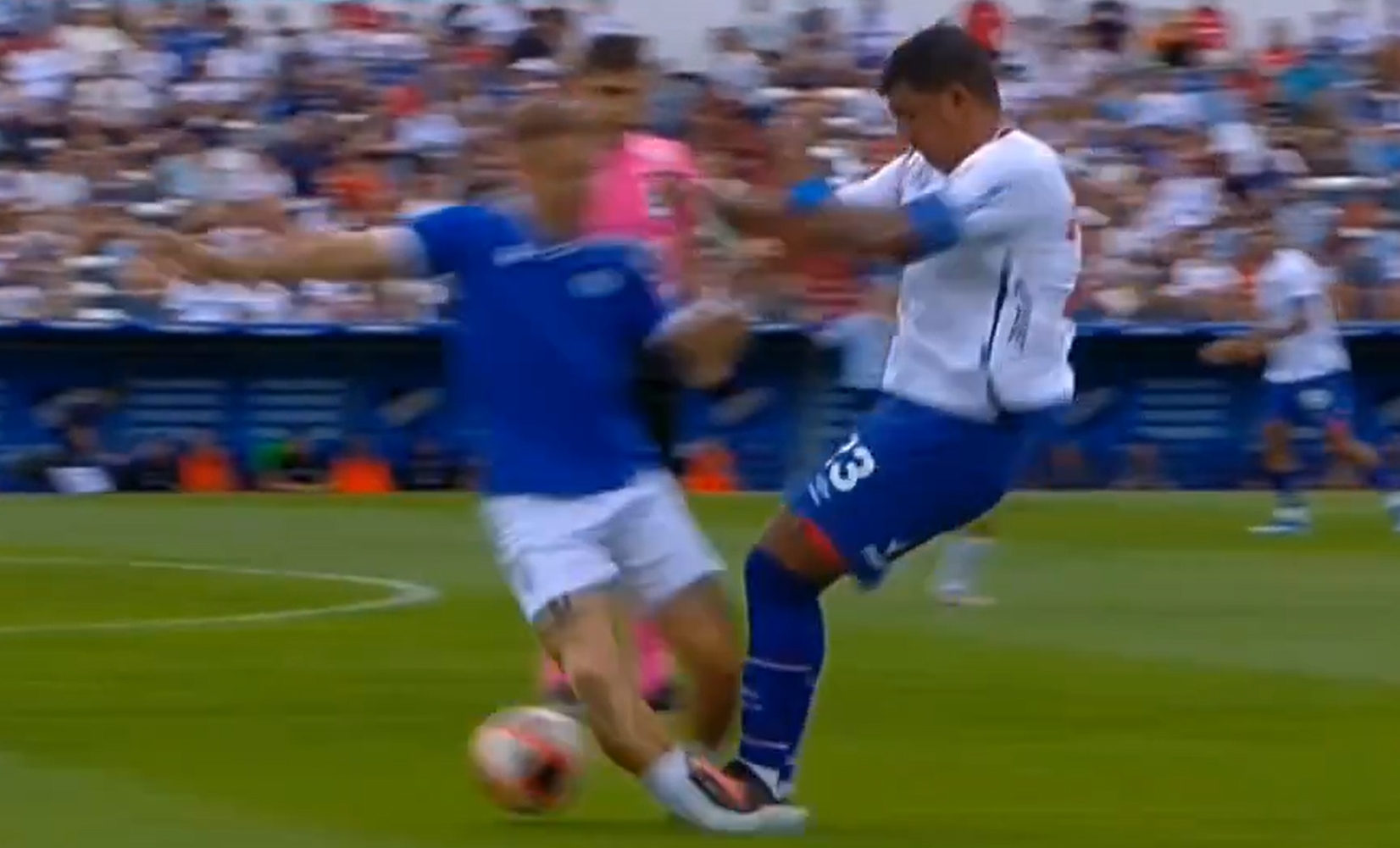 砸人飯碗??!烏拉圭聯(lián)賽驚現(xiàn)雙腿跳起搶斷????對(duì)手小腿被踩變形