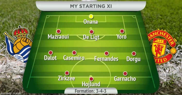 馬奎爾和烏加特被排除在這場比賽之外,這是一個巨大的打擊,因為這兩名球員之前都是球隊的首發(fā)球員。不過,阿莫林選擇讓馬茲拉維和卡塞米羅來代替他們首發(fā)也是合理的。卡塞米羅在其職業(yè)生涯的大部分時間在這個國家的表現(xiàn)都很出色,另外讓馬茲拉維出任三中衛(wèi)的右中衛(wèi)也不是什么難事。在目前這個階段,繼續(xù)選擇讓霍伊倫首發(fā)感覺有些看不到希望,但在對陣富勒姆的比賽開始時,他還是有一些閃光點的,所以我還是會選擇讓他首發(fā),放棄齊爾克澤有些苛刻,他沒有做錯太多,但埃里克森的出場將會能夠為球隊在中場提供更多的控制權(quán)。
