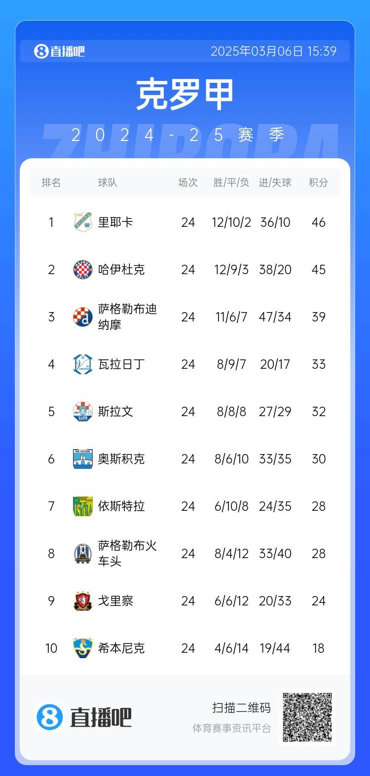 克羅地亞甲,法比奧·卡納瓦羅執(zhí)教的薩格勒布迪納摩,主場(chǎng)2-2戰(zhàn)平加圖索執(zhí)教的斯普利特哈伊杜克,兩隊(duì)繼續(xù)分列第三和第二。1分對(duì)于兩隊(duì)來(lái)說(shuō)都不滿意,好在榜首的里耶卡也戰(zhàn)平,否則斯普利特海杜克和里耶卡的分差將被拉大。