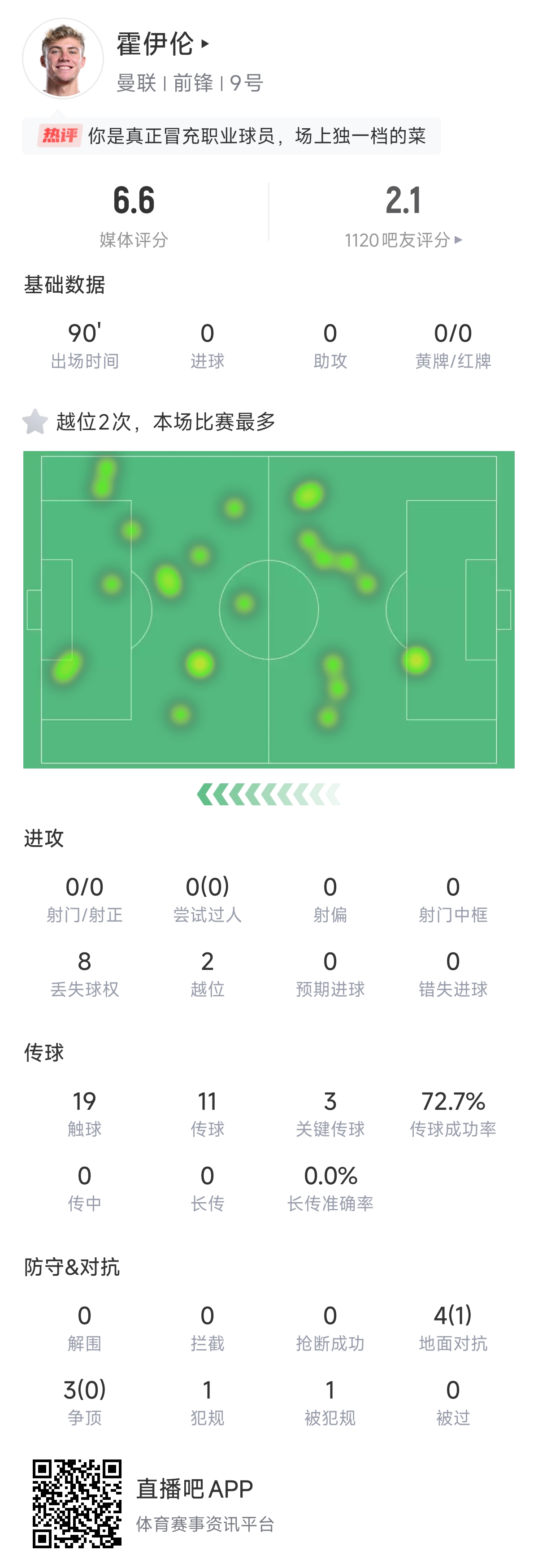 6000萬身價怕是要掉了…22歲霍伊倫熱點圖遍布全場但0射0正2越位