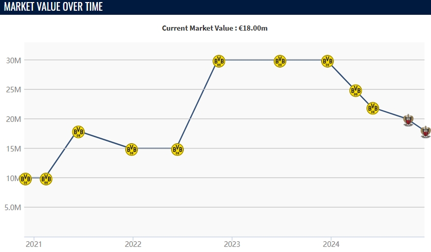 穆科科在2020/21賽季首次進(jìn)入多特一線隊(duì),自那之后,穆科科在多特各項(xiàng)賽事出戰(zhàn)99場,貢獻(xiàn)18球8助攻。