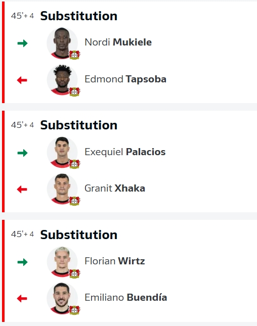 03月08日訊 德甲第25輪,勒沃庫森vs不萊梅。比賽下半場,勒沃庫森連換三人,維爾茨、帕拉西奧斯、穆基勒出場,換下布恩迪亞、扎卡以及塔普索巴。