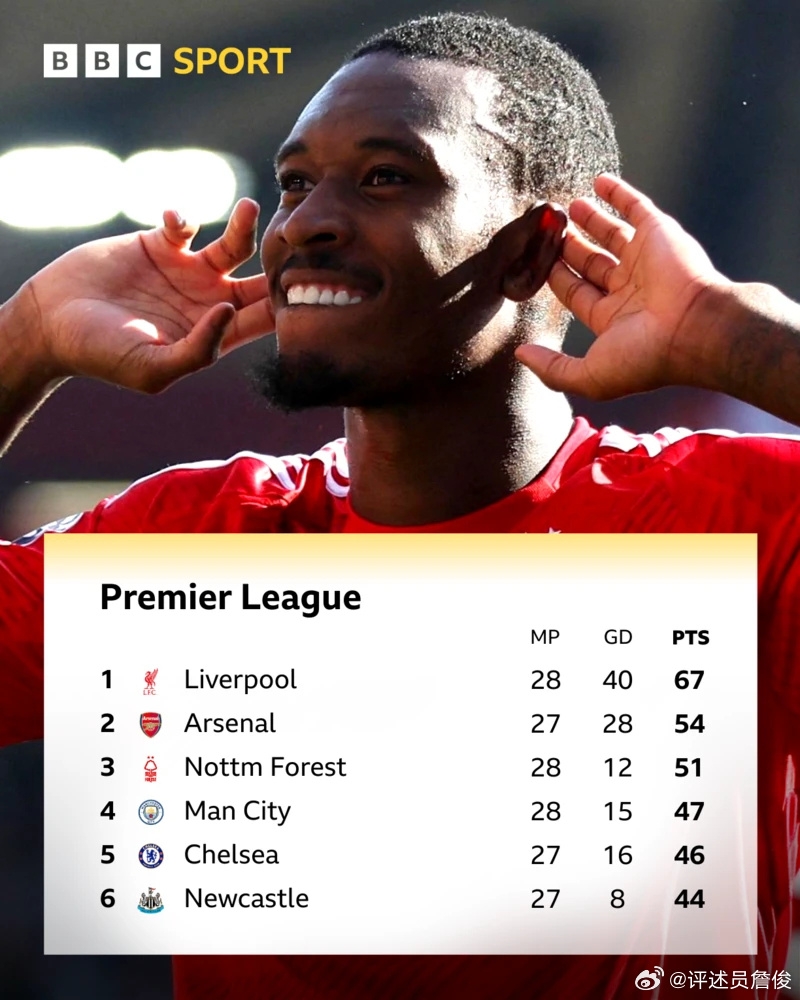 諾丁漢森林贏得很有說服力,整體的攻防很有彈性,回收迅速反擊堅決。努諾-桑托把一支上賽季排名第17的隊伍帶到第三,知人善用戰(zhàn)術(shù)切合實際,真有能名帥也!他們本季近30年首次英超主場勝曼城,俱樂部歷史上首次單季客場先后擊敗利物浦曼聯(lián),配得上下賽季重返歐冠!